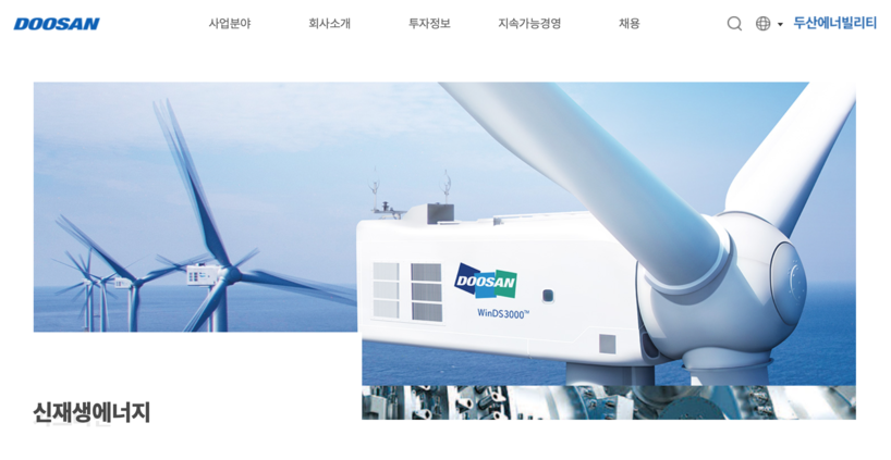 | ▲ 두산에너빌리티 홈페이지 갈무리. |