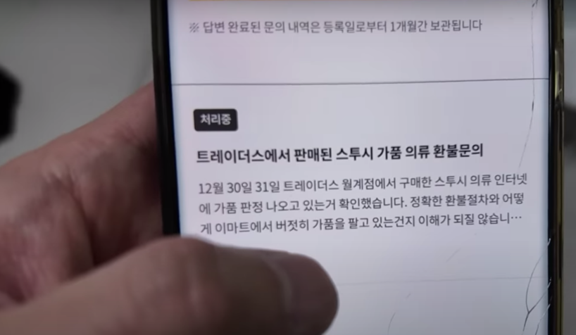 유튜버 A 씨에 따르면 이마트는 '스투시' 맨투맨 티셔츠 상품에 가품 논란이 일자 판매를 즉시 중단하고 환불을 원하는 고객을 대상으로 가품 여부와 관계없이 선제적으로 전액 환불 절차를 진행하고 있다.