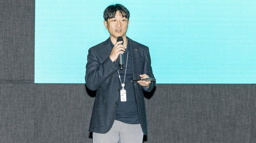 | ▲ 온실가스 저감의 중요성에 대해 설명하는 SK하이닉스 ESG추진 조성봉 부사장. (사진=SK하이닉스 제공) |