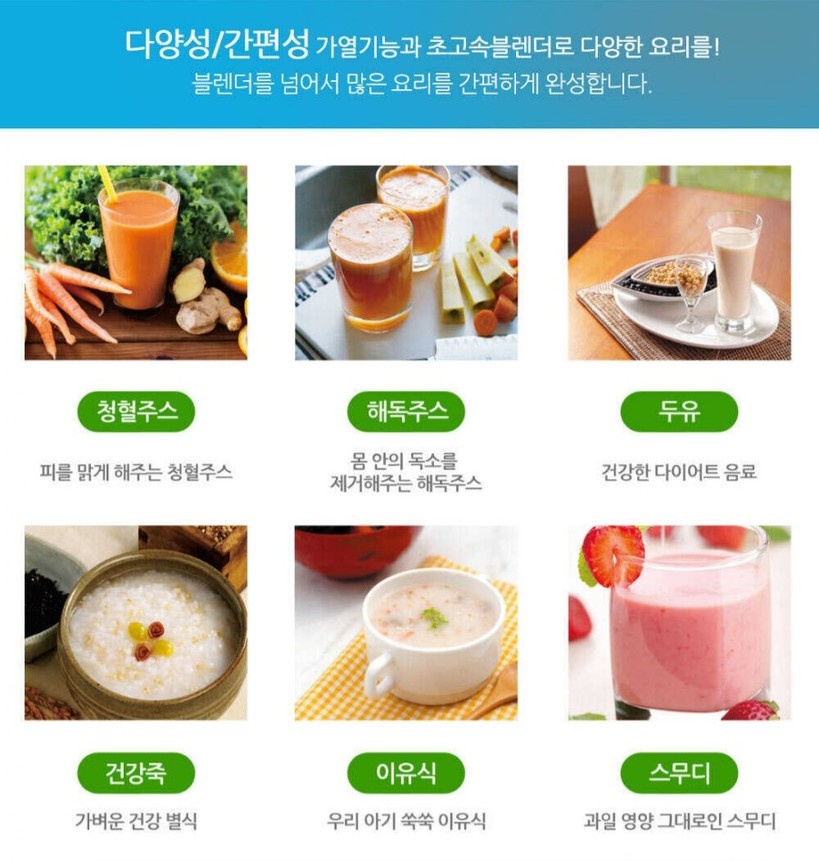 아닐까 싶다. 간편식, 대체씩, 이유식, 미음, 스프, 다이어트식 등 모든 간편식을 삶거나 익혀서 넣는 번거로움 없이 준비된 재료를 넣고 원하는 버튼만 누르면 자동으로 만들어준다. 제품이 편리한 기능과 더불어 세척 또한 간편하여 바쁜 현대 가정에게 꼭 필요한 필수품이 아닐까 생각된다.