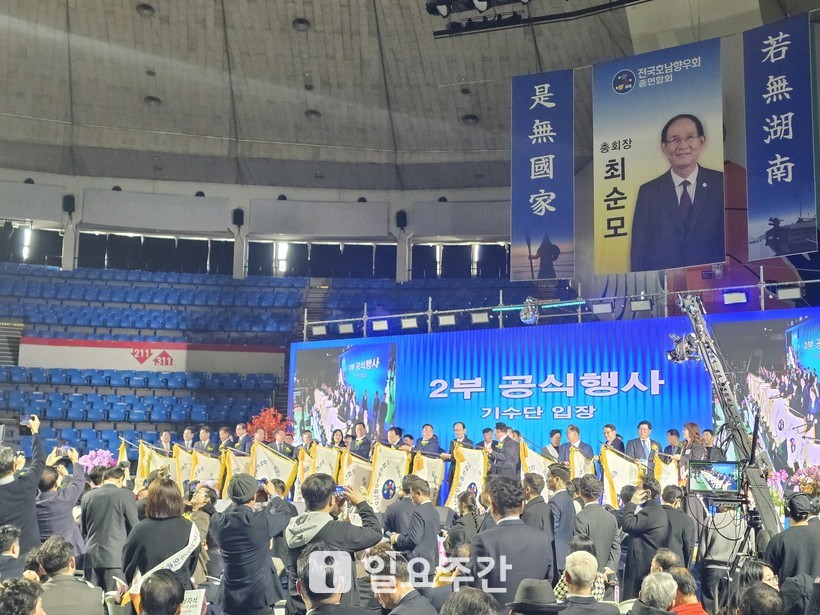 [일요주간 = 최종문 기자] 전국 1300만 호남 출향 향우들이 한자리에 모이는 전국호남향우회총연합회 정기총회 및 화합한마당잔치가 지난 22일 서울 잠실학생체육관에서 성대하게 열렸다. 이날 행사에는 최순모 총회장을 비롯해 임원진, 각 지역 향우회장단, 도·광역장 등 주요 인사들이 참석해 고향 사랑과 연대의 의미를 되새겼다.