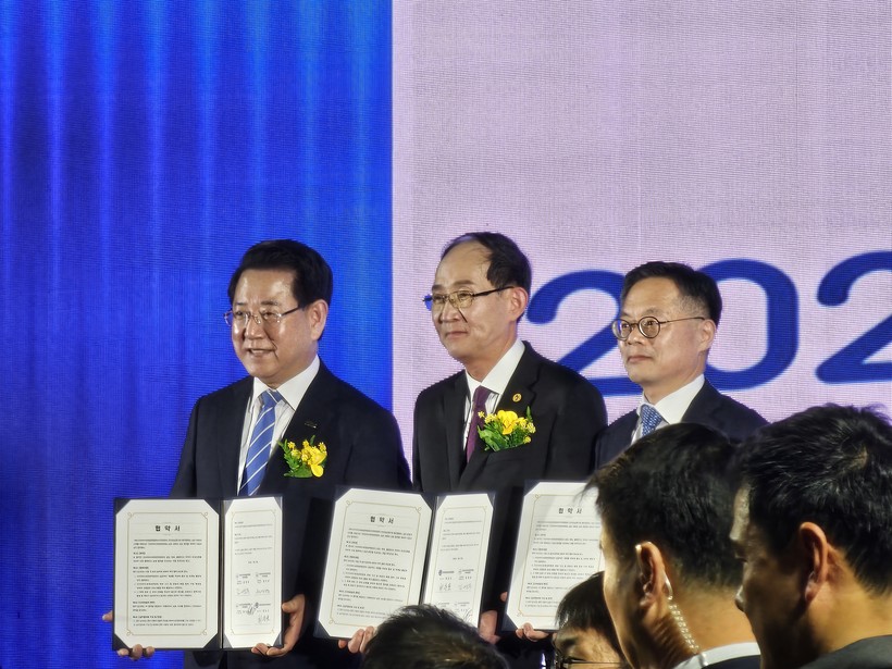 | ▲김경록 전라남도지사(왼쪽)와 최순모 총연합회장(가운데)이 협약식을 진행하는 모습. (사진=일요주간DB) |