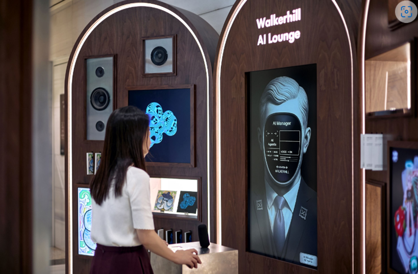 그랜드 워커힐 서울 1층에 자리한 워커힐 AI 라운지는 첨단 AI 기술 전문기업 커먼컴퓨터의 기술력과 워커힐의 공간 자산, 그리고 AI 혁신에 대한 워커힐의 의지가 결합해 탄생한 국내 최초 AI·호텔 융합 체험 공간이다. 이곳에서는 고도화된 워커힐 AI 가이드를 기반으로 AI 매니저와의 인터랙티브 음성 대화가 가능하며, 호텔 곳곳에 전시된 미술품을 소개하는 콘텐츠로 고객에게 색다른 체험을 제공한다.