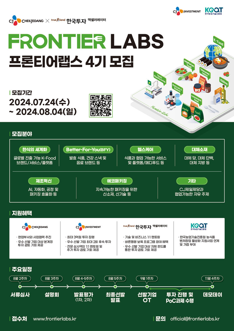 ▲ CJ제일제당, ‘프론티어 랩스 4기’ 모집 포스터. (사진=CJ그룹 제공) |