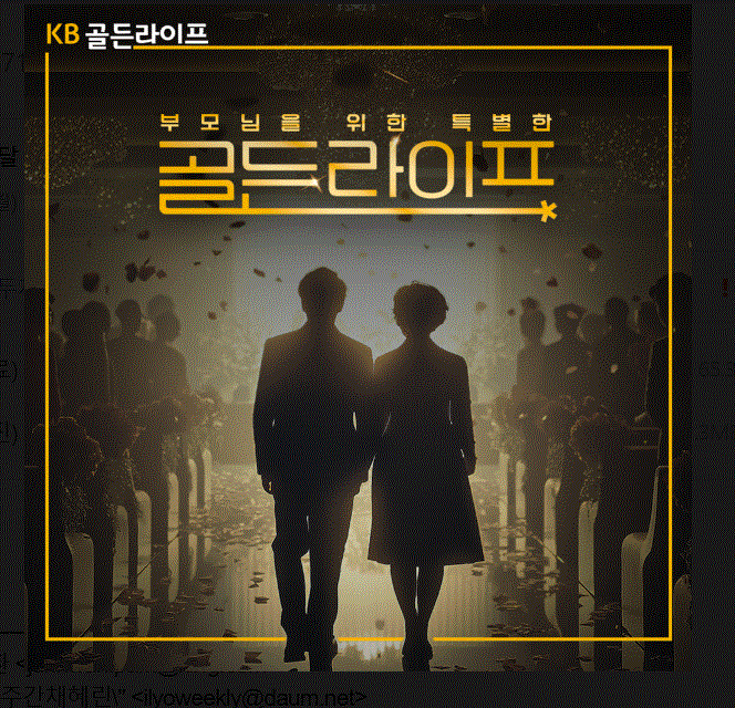 [일요주간 = 김완재 기자] KB국민은행이 ‘부모님을 위한 특별한 KB골든라이프’ 티저 영상을 공개하고 자녀로부터 부모님과 관련된 사연을 접수받는 이벤트를 진행한다.