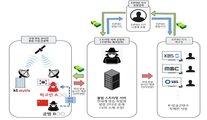 이번에 검거된 송출책들은 2016년부터 경기도 안산에 수십여 대의 위성 방송 수신기(셋톱박스)와 방송 송출 장비 등을 갖추고 KBS, 연합뉴스TV 등 국내 정규방송과 종합편성채널 28개의 실시간 방송 영상을 저작권자와 저작물 이용 계약을 맺지 않은 상태에서 무단으로 해외로 송출했다.