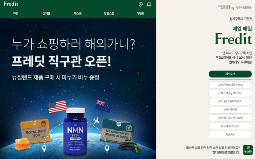 [일요주간 = 노현주 기자] hy가 자사몰 ‘프레딧(Fredit)’에 ‘해외직구관’ 서비스를 오픈하는 등 제품 카테고리 확대를 통해 채널 경쟁력을 강화에 나섰다고 14일 밝혔다.