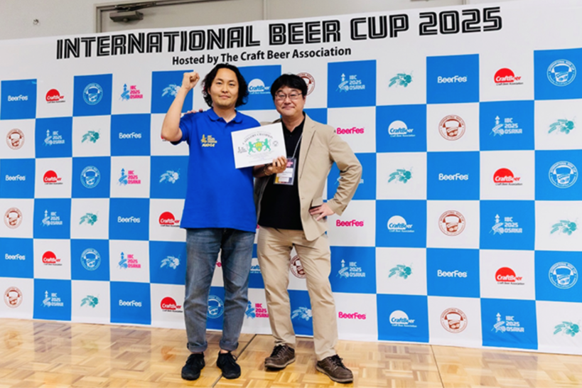 | ▲ 일본 오사카에서 열린 ‘2025 인터내셔널 비어 컵(IBC)’ 시상식에서 구스아일랜드 브루하우스 이창현 브루마스터(왼쪽)가 카테고리 챔피언 상장을 들고 인터내셔널 비어 컵 테츠야 코지마(Tetsuya Kojima) 디렉터와 함께 기념촬영을 하고 있다. (사진 = OB맥주 제공) |
