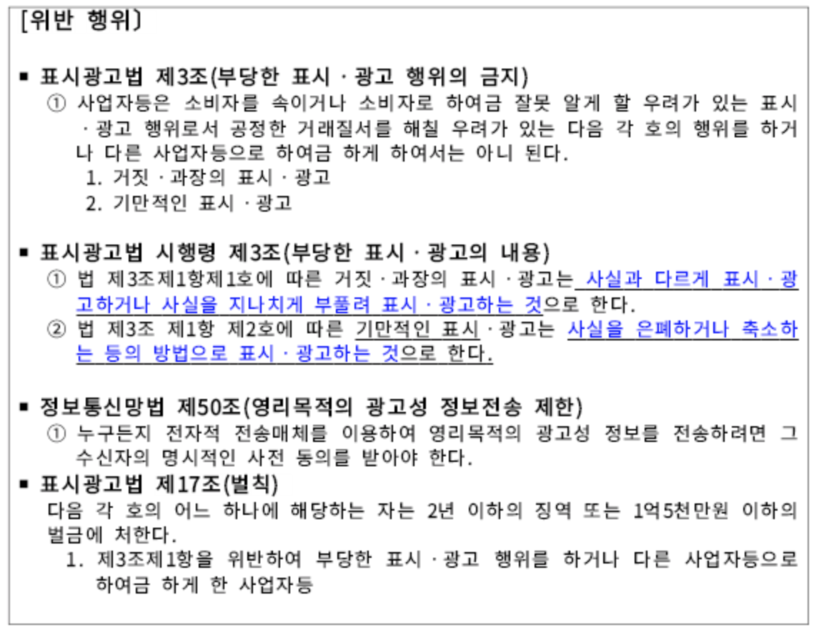 그러나 표시광고법에 따르면 KT의 반복적인 불법스팸 전송행위는 제3조 제1항 '거짓・과장의 광고' 내지는 '기만적인 광고'이며 이는 동법 제17조 제1항 ’부당한 광고행위‘에 따라 형사처벌에 해당해 검찰에 고발하게 됐다는 게 소비자주권시민회의 측의 설명이다.