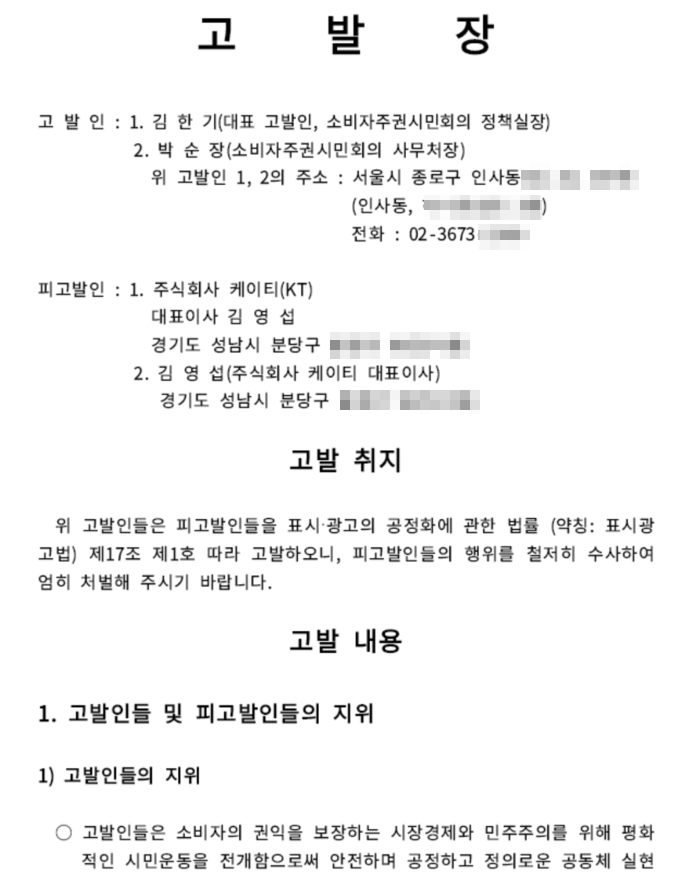 [일요주간 = 하수은 기자] 최근 불법도박, 대출사기, 주식권유 등 불법스팸으로 인한 사회‧경제적 피해가 증가하고 있는 가운데 소비자단체 '소비자주권시민회의'는 KT의 반복적인 불법스팸 전송과 관련해 KT(대표이사 김영섭)를 표시광고법 제17조에 근거한 부당한 광고행위 혐의로 지난 22일 오전 11시 형사고발했다고 밝혔다.