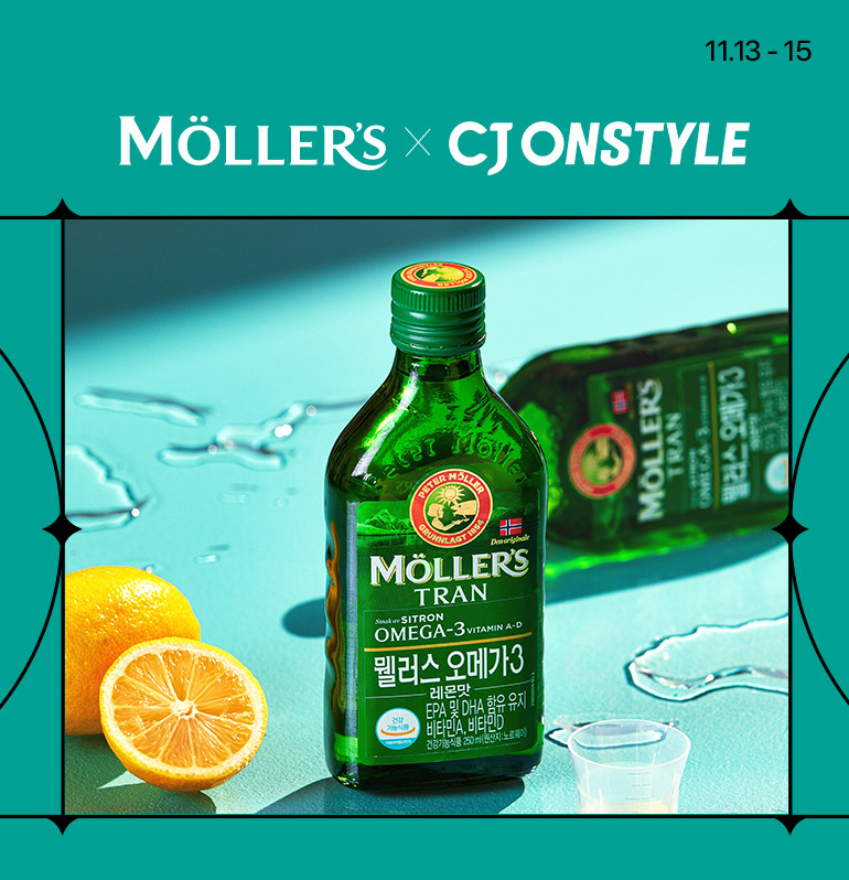 [일요주간 = 노현주 기자] hy가 ‘뭴러스(MÖLLER’S) 오메가3 레몬맛(이하 뭴러스 오메가3)’을 15일 CJ온스타일 홈쇼핑 최화정쇼에서 단독 론칭했다.