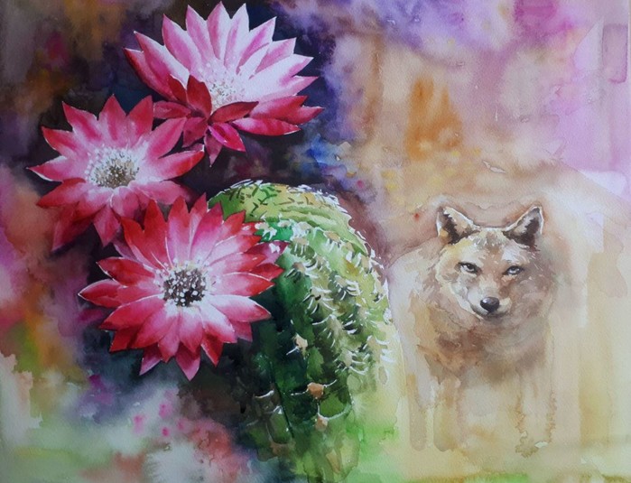 ▲ 선인장은 가시로 아픔과 상처를 상징하지만 꽃을 피우기에, 이는 선한 늑대의 승리이다. |