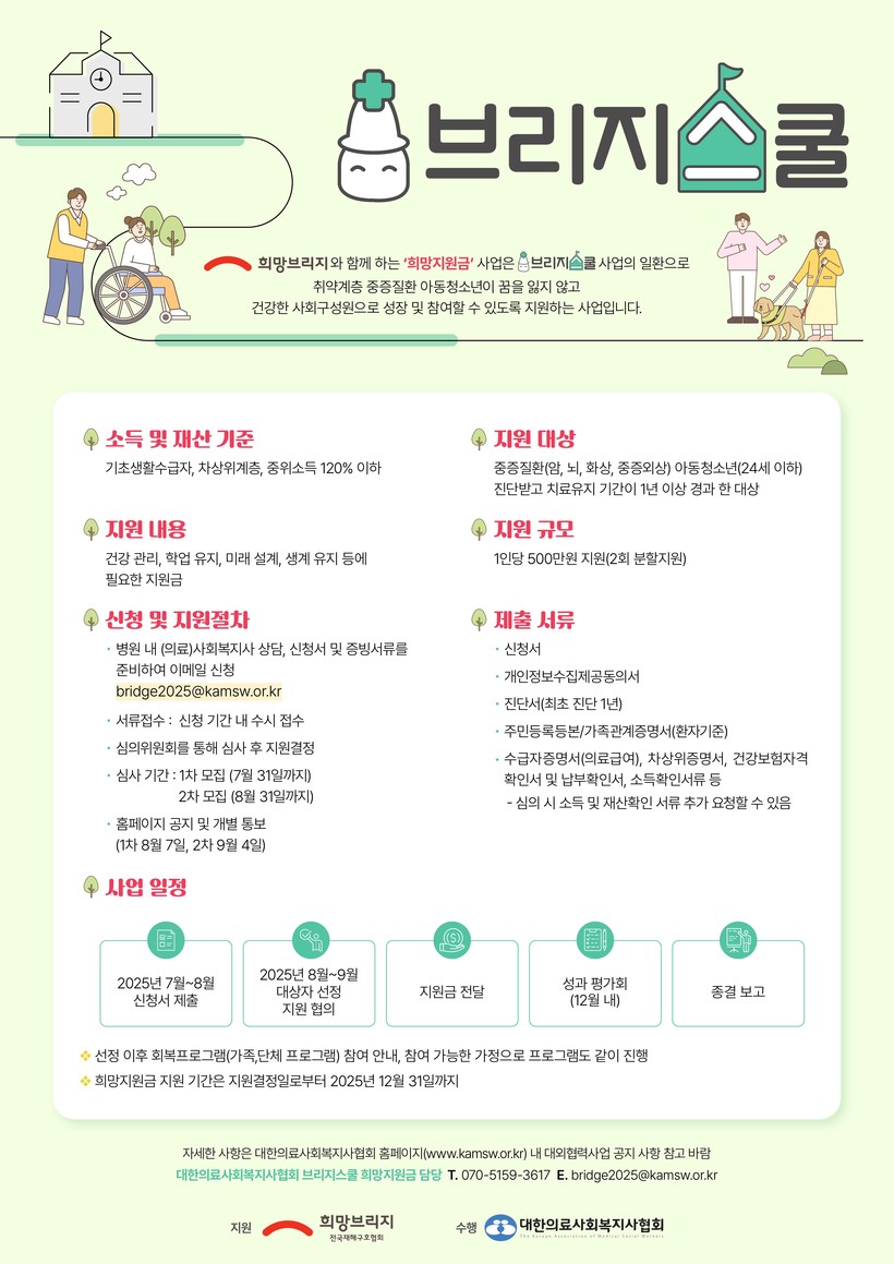 "꿈을 멈추지 않도록"...희망브리지, 중증질환 아동·청소년 대상 '희망지원금' 사업 시작2025.07.24