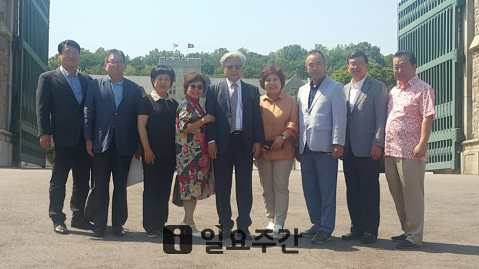 ▲ 왼쪽에서 3번째 정선모 작가, 다섯 번째 최이락 교수, 맨오른쪽 류신영박사, 두 번째 박사옥 회장 |