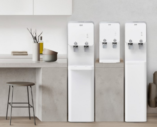 슬림한 사이즈(23cm)와 심플한 디자인의 더슬림 정수기는 공간 활용도를 높여주고, 더슬림 더블(27cm)은 풍부한 정수 용량을 자랑해 카페, 소형 매장, 사무실 등 다양한 장소에 맞춤 환경을 제공한다.