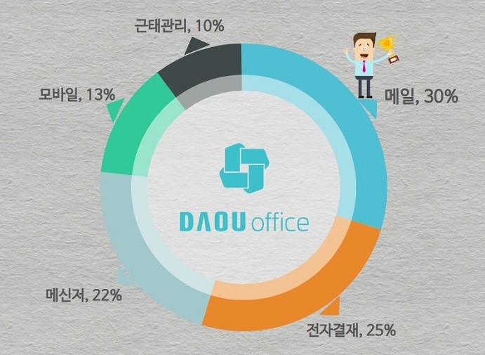 조사 결과 그룹웨어 도입을 위해 가장 많이 온라인에서 검색하는 키워드는 '메일'(30%)이었다. 메일은 그룹웨어의 가장 기본이 되는 기능으로, 기업 내부 임직원 간 그리고 외부 협력사 간 소통을 위해 가장 중심이 되는 역할을 한다.