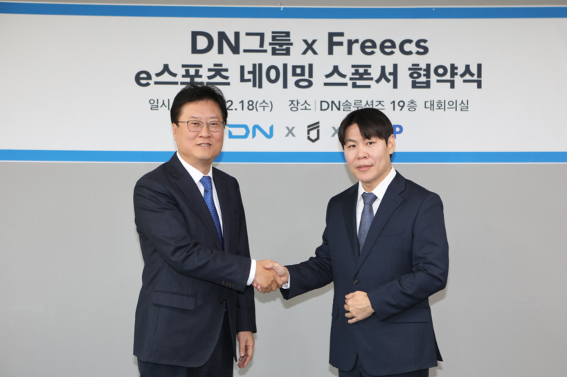 글로벌 제조 혁신을 주도하는 DN그룹은 라이브 스트리밍 플랫폼 SOOP의 프로 게임단 프릭스와 네이밍 파트너십을 체결하고 e스포츠 팬들과 적극적 소통에 나선다고 26일 밝혔다.