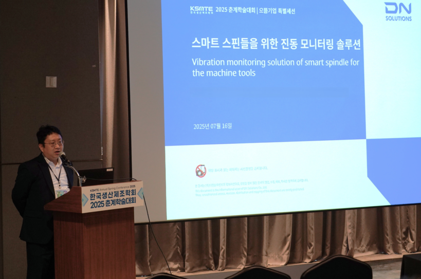 [일요주간 = 엄지영 기자] 공작기계(머신 툴 Machine Tool) 글로벌 3위, 국내 1위 기업인 ㈜DN솔루션즈(DN Solutions, 대표이사 김원종)가 한국생산제조학회 2025 춘계학술대회에서 경희대·부산대·연세대·한국기계연구원 등과 함께 ‘개방형 운영체제 기반 스마트 공작기계 및 지능화 솔루션’ 특별세션을 주도하며 최신 CNC 자동화·AI 기반 공작기계 기술과 연구 성과를 공유했다.