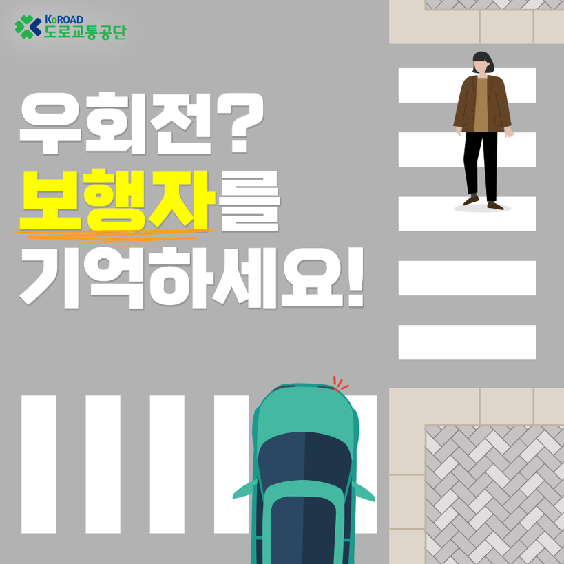 이번 카드뉴스 콘텐츠는 “우회전? 보행자를 기억하세요!”를 주제로, 우회전 시 헷갈리는 상황에 직면했을 때, 보행자 유무를 대원칙으로 정지와 출발을 판단하면 된다는 내용을 담았다.