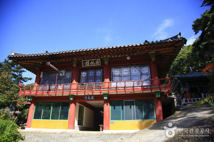 대웅전은 정면 3칸, 측면 2칸 규모의 맞배지붕 건물로 안에는 석가여래 좌상이 봉안되어 있고, 불화로는 1918년에 금어 김벽산(金碧山)에 의해 조성된 영산회상도와 신중도, 지장도가 봉안되어 있다. 대웅전에 봉안된 석가여래 좌상은 양식상 17세기에 조성된 것으로 추정된다. 불상 앞에 목조장식이 화려한 불전패(佛殿牌)가 봉안되어 있는데 ‘세자 저하 수천추(世子低下壽千秋)’라는 글귀가 적혀 있으며, 조선 후기 것으로 보인다.