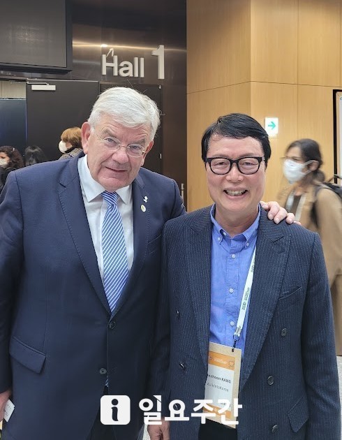 ▲ 2022년 10월 UCLG(세계지방정부연합)대전 대회에서 만난 필자와 헤이그시 ‘얀 반 자넨’(Jan Van Zanen) 시장. |