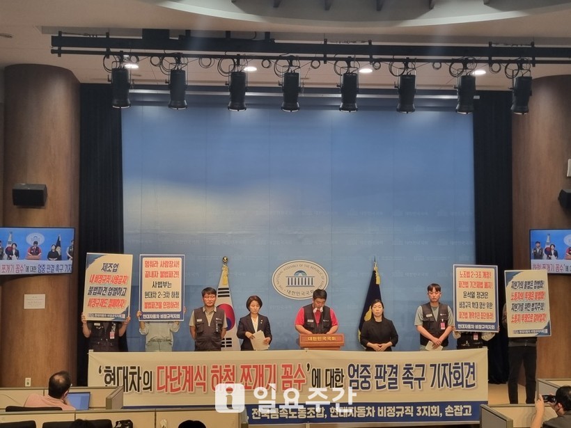 앞서 지난 4일 울산지방법원은 2012년 현대자동차 비정규직 노동자들이 제기한 불법파견 고소·고발 사건에 대해 10년 만에 현대자동차의 불법파견 범죄를 인정했다. 재판부는 “현대차가 불법수익 창출을 위해 고의성을 가지고 오랜 시간 위장도급과 불법파견 범죄를 저질러왔다”면서 3000만 원의 벌금형을 선고했다.