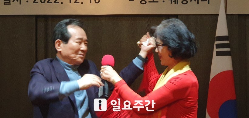 | ▲ 흥겨운 무대! 이설 가수와 함께 정세균 전 총리 |
