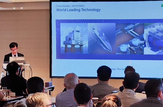 | ▲ HD한국조선해양이 그리스 아테네에서 전 세계 조선·해운 관계자 100여 명을 초청한 가운데 '국제테크포럼'을 열고, 암모니아추진선 신기술을 발표했다. (사진=HD현대 제공) |