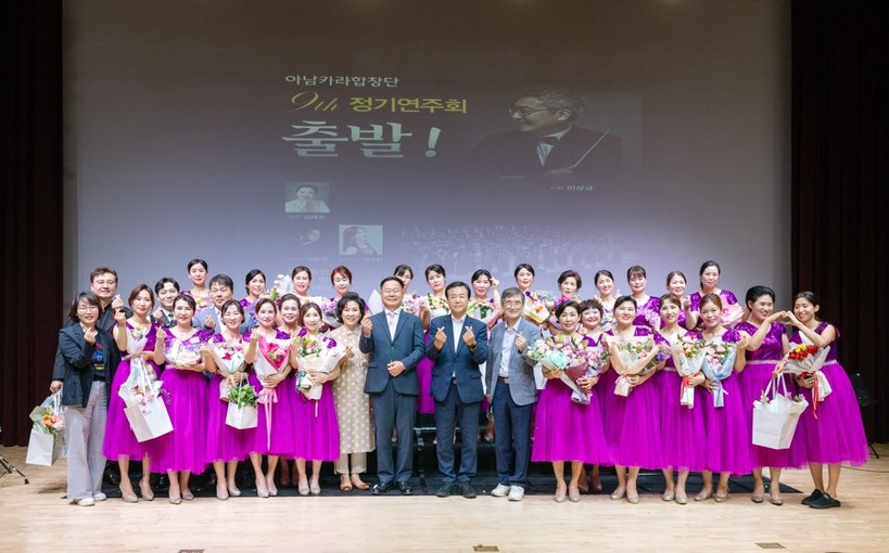 | ▲ “아남카라 합창단 정기연주회가 지난 12일 칠곡 향사아트센터에서 열렸다. 공연을 마친 합창단원들이 김재욱 칠곡군수 등과 함께 기념촬영을 하고 있다.”(사진=칠곡군) |