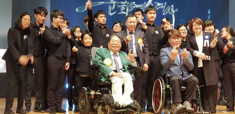 | ▲ 제14회째 대한민국장애인문화예술대상에서 수상자들이 단체 사진을 찍고 있는 모습.(사진=한국장애인문화전남협회 제공) |