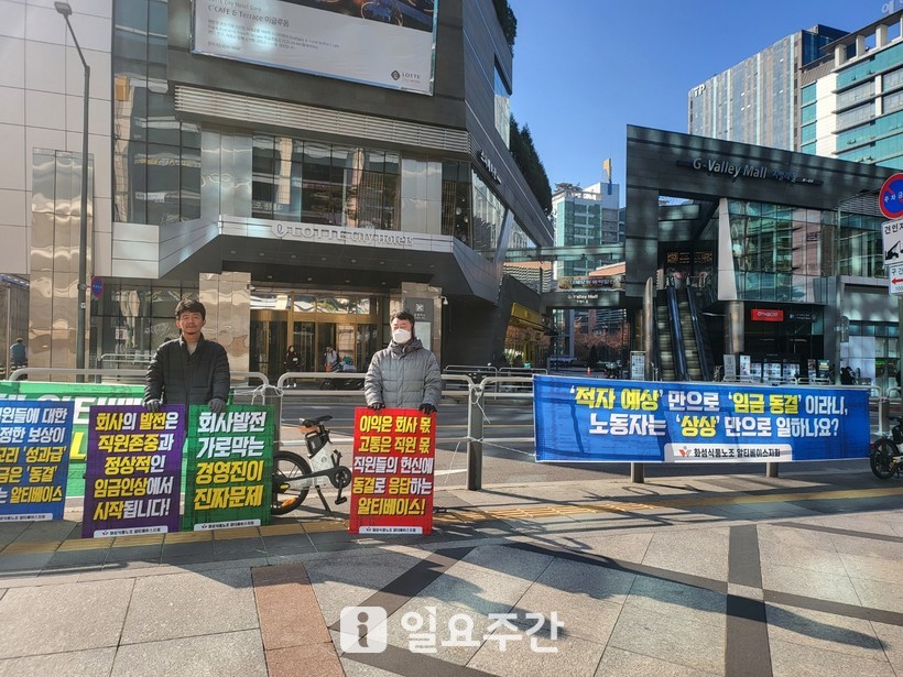 최근 전국화학섬유식품산업노동조합 소속 알티베이스지회(이하 알티베이스노조)는 설립 15년 만에 처음으로 쟁의행위를 결의하며 피켓팅 등 본격적인 단체행동에 나섰다. 현재 선전전을 진행하고 있다.