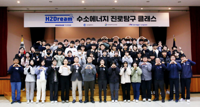 두산퓨얼셀 관계자는 “인천시는 수소 연관 산업 활성화, 수소 인력 육성 등을 정책사업으로 추진하고 있으며 두산퓨얼셀과 협업해 다수의 수소연료전지 발전소를 운영하는 등 상호 협력관계를 유지하고 있다”면서 “수소에 관심이 많아 향후 수소 분야로 진로를 고민하는 학생들을 위해 다양한 교육을 진행해 수소 분야 인재 육성에 기여하겠다”고 말했다.