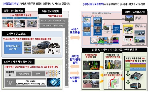 산업부는 자율주행차의 인공지능(AI) 기반 컴퓨팅 기술·차량제어 솔루션 개발, 기술 실증, 국내외 표준을 도출할 예정이다.