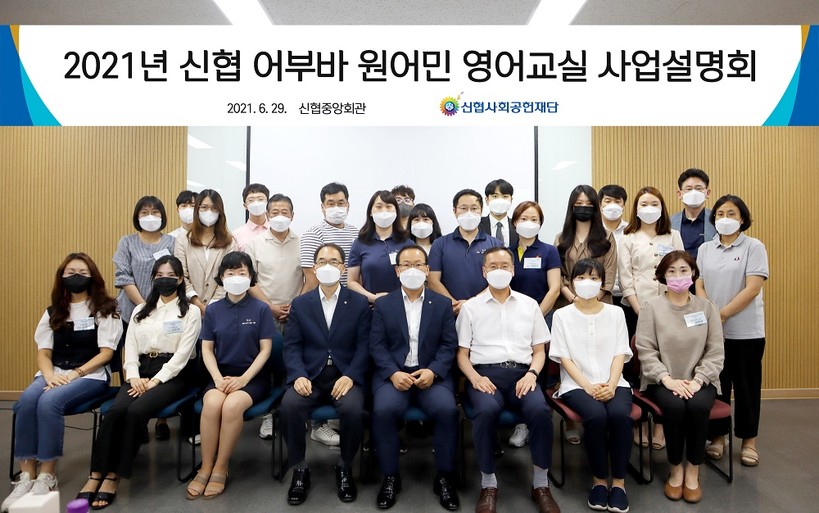 ▲ 2021년 신협 어부바 원어민 영어교실 사업설명회 단체 사진. (사진=신협중앙회)