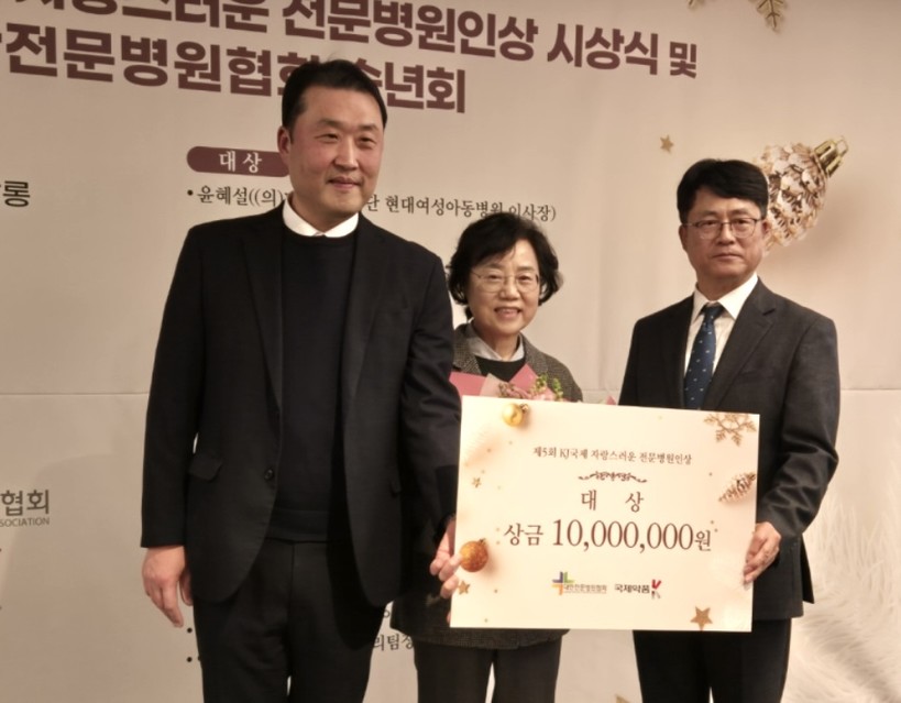 [일요주간 = 하수은 기자] 국제약품(대표이사 남태훈)은 지난 13일 ‘제5회 KJ국제 자랑스러운 전문병원인상’에서 ‘윤혜설 내일의료재단 현대여성아동병원 이사장’이 대상을 수상했다고 17일 밝혔다.
