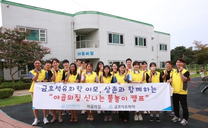 약 20명의 금호석화 직원들이 방문한 시설에서는 원래 외부 수상 레크리에이션 시설에서 여름을 축하하기 위한 봉사활동을 계획했으나 갑작스런 비와 기온 하락으로 인해 실내 활동으로 전환, 아이들의 놀이를 돌보는 공간을 만들고 관리하는 활동을 했다.
