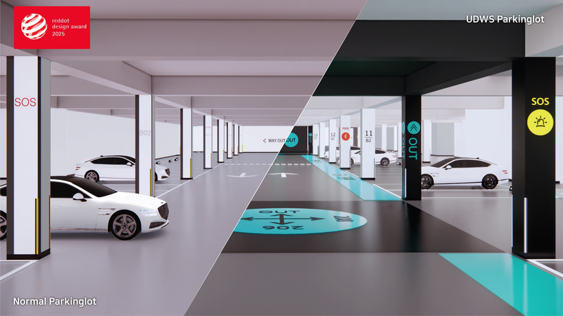 KCC와 현대건설이 협업한 수상작 ‘히어&썸웨어’(Here&Somewhere)는 현대건설이 개발한 지하주차장 길찾기 시스템 웨이파인딩(Wayfinding)에, KCC의 컬러유니버설디자인(Color Universal Design, 이하 CUD)을 접목해 누구나 쉽고 빠르고 안전하게 목적지를 찾을 수 있도록 개발된 디자인 콘셉트다.