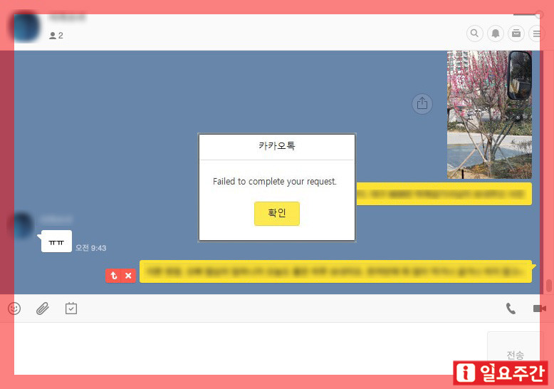 | ▲ 카카오톡 오류발생 화면 (사진합성=일요주간) |