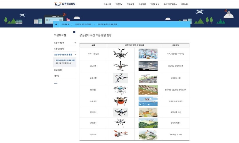 또 국토부의 드론 실증도시, 드론 특별자유화구역, 해외 진출 지원 등 최신정책과 지원사업 동향, 영월·보은·고성에서 운영 중인 드론 전용 비행시험장의 사용정보, 각종 행사 소식과 드론 산업 전반의 최신뉴스 등 드론기업에 유용한 정보도 확인할 수 있다.