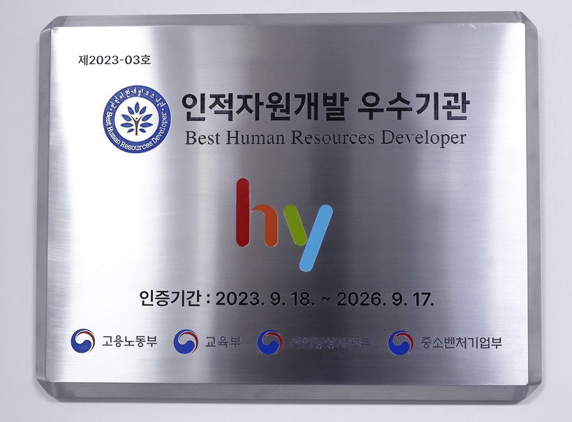 ▲ hy가 2023년도 인적자원개발 우수기관에 선정됐다.(사진=hy 제공) |