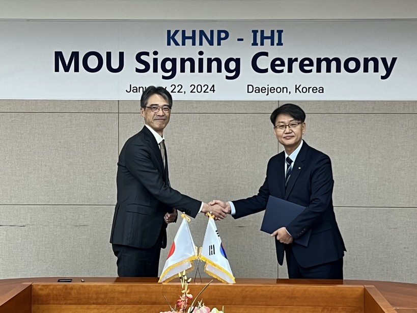 | ▲ 한수원이 22일 일본 종합중공업기업 IHI와 공동협력 MOU를 체결 했다. (사진=한수원) |
