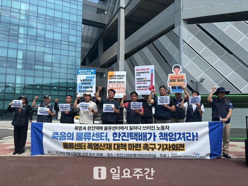 [일요주간=임태경 기자] 폭염 속에서 작업을 하던 물류센터 노동자가 사망한 지 한 달이 채 안 되는 시점에 또다시 물류센터 폭염 산업재해가 발생했다. 지난 7일 한진스마트메가허브터미널에서 상하차 노동을 하던 30대 노동자가 41도에 육박하는 체온으로 쓰러져 의식이 없는 상태로 병원에 이송되는 사고가 발생했다.