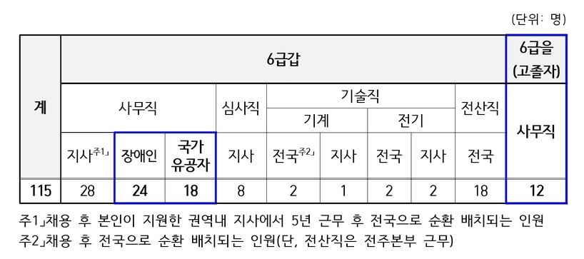 채용규모는 총 115명으로 성별·연령·학력·전공에 관계없이 지원 가능하였으며 서류전형, 인성검사, 필기시험, 면접 등 공개경쟁을 통해 최종합격자를 결정했다.