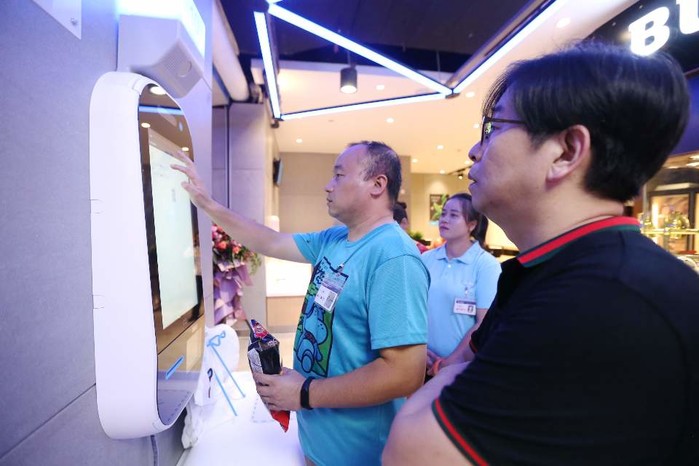 | ▲중국 상거래업체 1위 알리바바그룹이 운영하는 신선식품 전문매장 허마셴셩(盒马鲜生)에서 직원들이 고객들을 대신해 스마트폰으로 상품 진열대 곳곳에 붙어있는 QR코드를 찍어 장을 보고 있는 모습.(사진= 농림축산식품부 제공) |