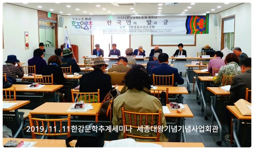 지난 11월 11일(금) 세종대왕대황기념사업회 회관에서 ‘한국인의 말과 글-훈민정음과 민족문화’라는 주제로 한강문학회와 한국문학진흥재단이 주관하는 ‘2019 한강문학’ 추계 세미나를 열었다.