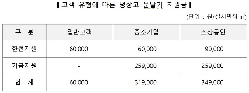 | ▲ 고객 유형에 따른 냉장고 문달기 지원금 (표=한전) |