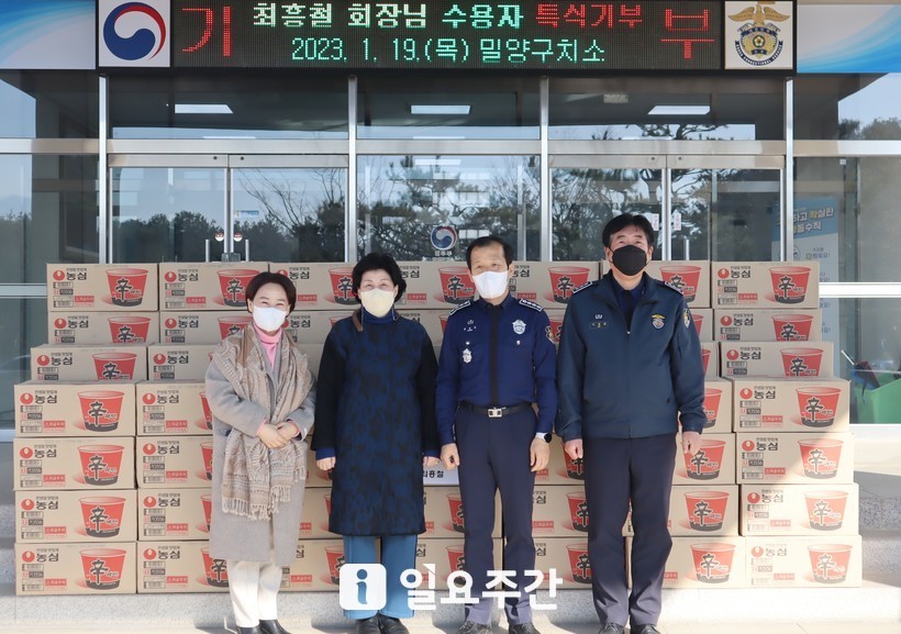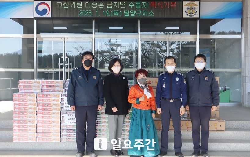 [일요주간 = 김성환 기자] 밀양구치소 교정협의회(회장 남세우)는 19일 밀양구치소(소장 정원수) 수용자들에게 나눠 줄 특식을 기부했다.