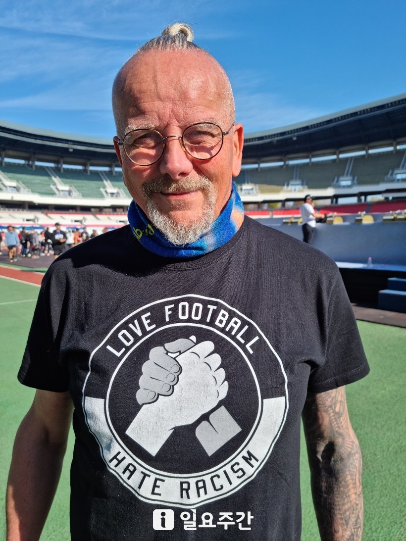 데라시마 교수는 또 ‘LRG Torpedo Berlin’ 마라톤클럽 회장 Stephan Schillhaneck-Demke 씨가 입고 있는 티셔츠에 적힌 문구에 깊은 관심을 나타냈다. 티셔츠에는 ‘LOVE FOOTBALL, HATE RACISM’이 새겨져 있었다. ‘스포츠와 평화·인권·행동’에 큰 관심을 갖고 있는 데라시마 교수의 눈에 퍼뜩 띄지 않을 수 없었을 것이다. 지금 유럽 축구계에서는 인종차별주의를 반대하는 운동이 보편화되고 있다.