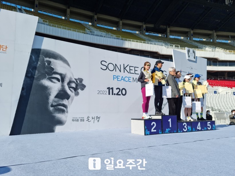 <손기정 평전>의 저자로, 11월 18일부터 23일까지 일정으로 한국을 방문 중인 일본 유네스코 클럽 데라시마 젠이치(寺島善一, 메이지대학 명예교수) 회장은 20일 오전 잠실 종합운동장 주경기장에서 열린 ‘2022 손기정 평화마라톤대회’에 참석하고, 입상자들에 대해 시상을 하였다.