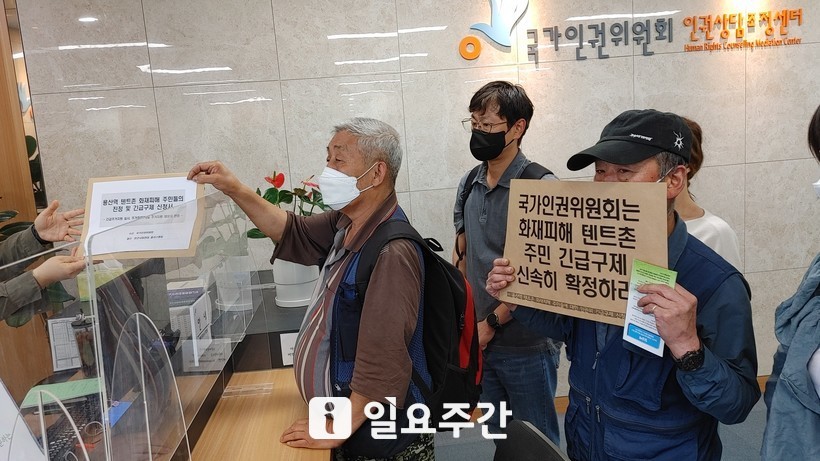 이 과정에서 용산역 텐트촌에서 지난달 25일, 화재 발생으로 텐트 2개 동이 소실됐다. 거주지를 잃은 주민들은 이틀 뒤(27일) 국가인권위원회에 진정 및 긴급 구제를 신청한 바 있다.